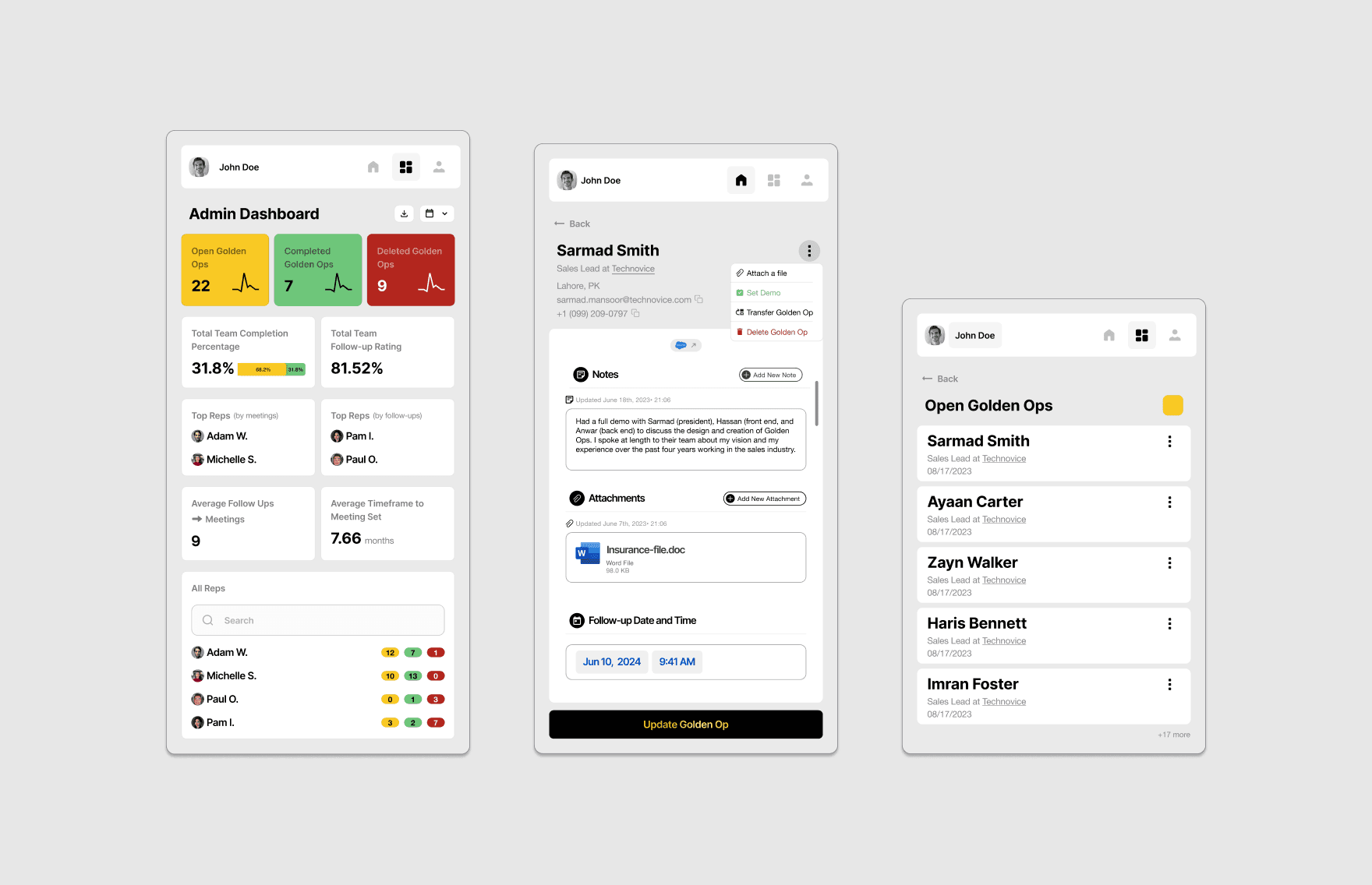 Simplified Dashboard Layout — Created a clean, hierarchy-based interface that highlights urgent follow-ups first.