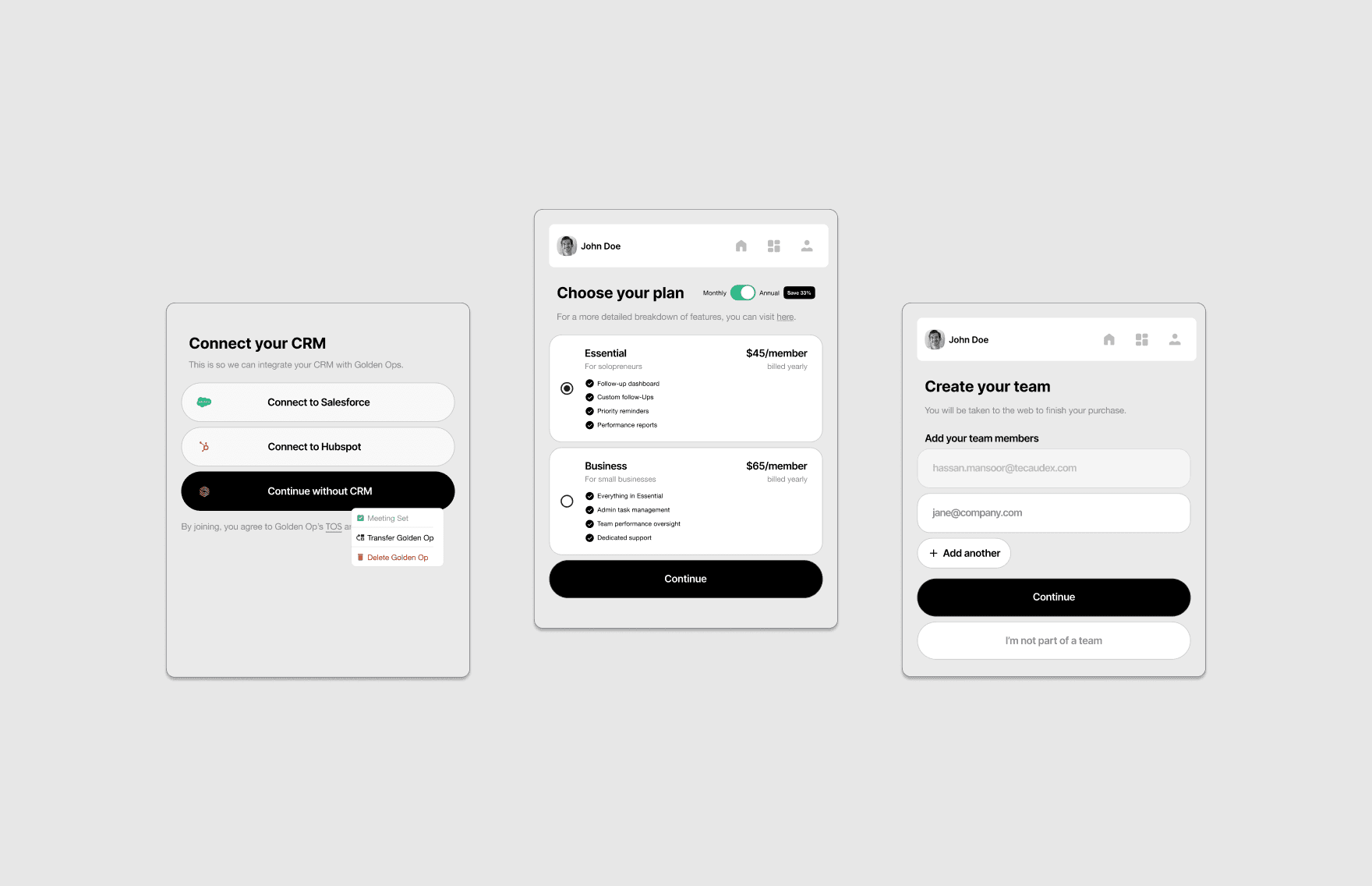 Streamlined CRM Sync Flow — Designed intuitive integration screens to connect with major CRMs with minimal steps.