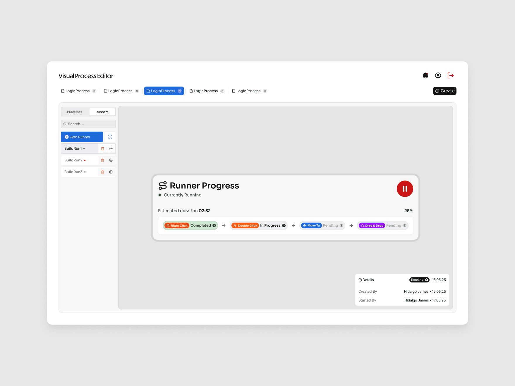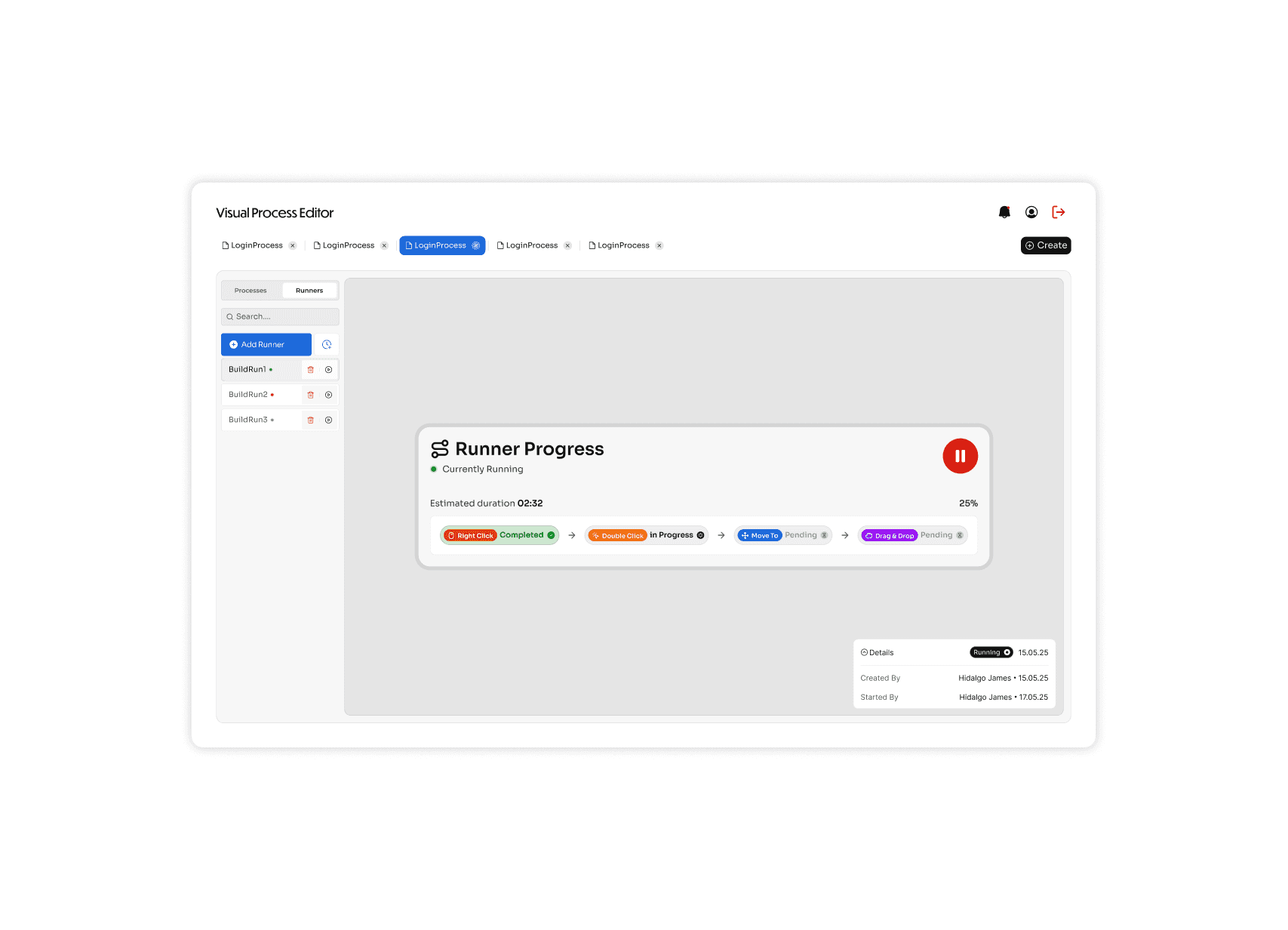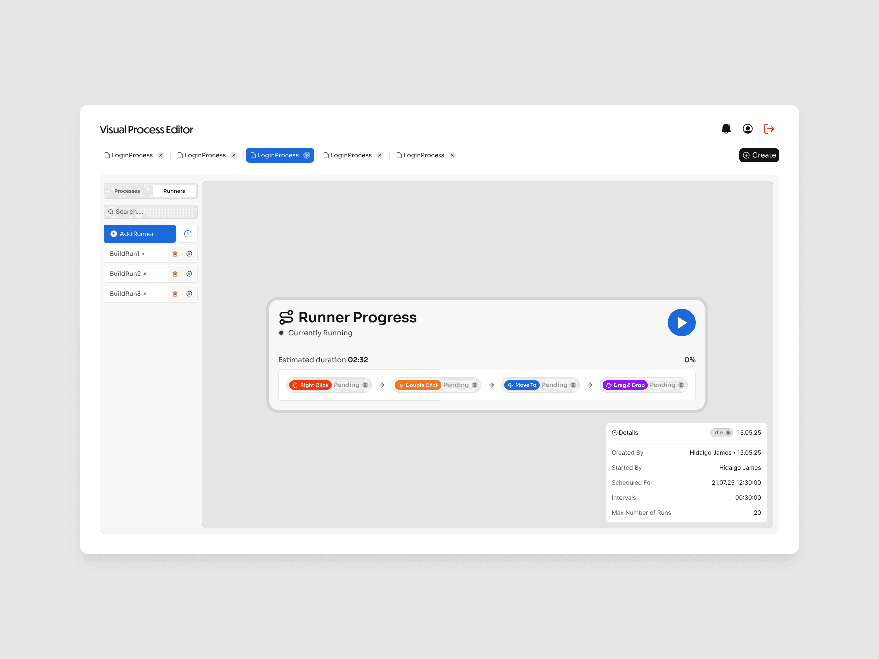 Designed flexible components that allow new processes and runners to be added easily.Clear system feedback